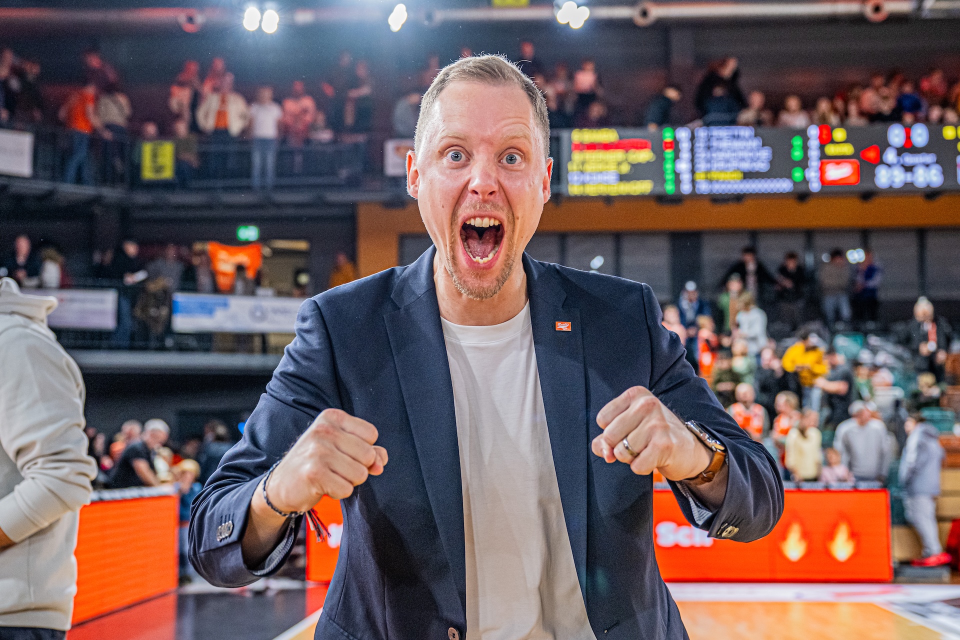 Fastbreak, TJ Bamba, Dunking: RASTA macht das 59:65 (31.) und darf weiter vom Viertelfinale träumen. Wieder Bamba, jetzt mit einem Dreier zum 64:70, Philipp Herkenhoff trifft gleich den nächsten von vor der Chemnitzer Bank - 67:70, Auszeit Chemnitz (alles 34.). 3:46 Minuten vor dem Ende ist es dann soweit, Lloyd Pandi sorgt für den Ausgleich (75:75, 37.), der RASTA Dome explodiert förmlich und Rodrigo Pastore nimmt seine letzte Auszeit. Nur lässt Alonzo Verge JR sich nicht stoppen. Dreier des Guards, And-One hinterher, sein 34. Punkt zum 81:78 (38.). Der am Freitag 27 Jahre alt gewordene Mann aus Chicago schafft 94 Sekunden vor dem Ende noch das 85:80, auf den Rängen gibt’s längst kein halten mehr. Chemnitz kontert noch einmal, hat mit dem letzten Ballbesitz, nachdem Verge JR - natürlich - zwei Freiwürfe versenkt hat, die Chance zum Ausgleich. Ty Brewer versucht es, der Ball geht erst ans Brett, dann durch RASTAs Reuse - 89:89! Doch: Die Spieluhr war vor dem Wurf abgelaufen. Oder nicht? Die Schiedsrichter versichern sich per Video. 70 Sekunden später orkanartiger Jubel im RASTA Dome, Vechta steht zum zweiten Mal in der Klubgeschichte im BBL Pokal-Viertelfinale.