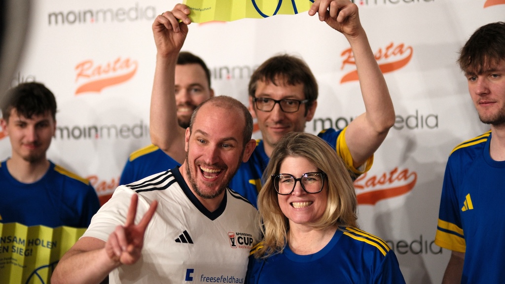 Obwohl „nur“ mit einem Unentschieden ins Turnier gestartet und als Zweiter der Gruppe D fürs Viertelfinal qualifiziert, gewann schließlich das Team von BERDING BETON den „RASTA Sponsorencup powered by moin.media“. Die Truppe rührte dabei alles andere als Beton an, marschierte ungeschlagen durchs Turnier und gewann am Ende völlig verdient.