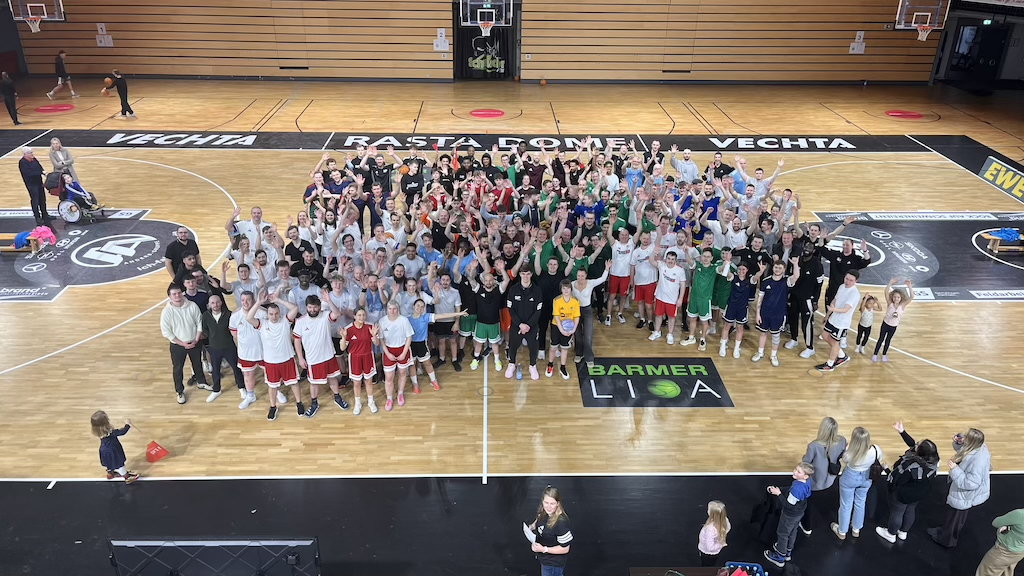 (26.2.2026) Der „RASTA Sponsorencup powered by moin.media“ hat am Samstag wieder für große Begeisterung gesorgt. 25 Unternehmen, die sich jeweils als Sponsor bei RASTA Vechta engagieren, stellten insgesamt 30 Mannschaften. Sie trugen 106 Partien aus, im 3x3-Format über jeweils fünf Minuten. Da kam so mancher ganz schön ins schwitzen und freute sich auf das anschließende Get-together in der der n&m Genuss Vibrations Lounge, dem VIP-Raum im RASTA Dome.